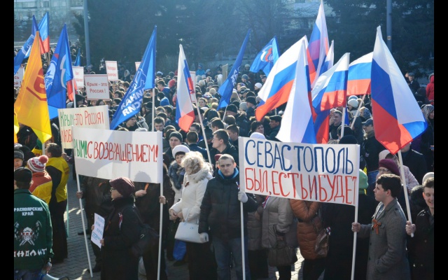 18 марта в Красноярске прошёл митинг в поддержку выбора жителей Крыма и Севастополя. Под лозунгами "Мы вместе", "Крым – это Россия", "Севастополь был, есть и будет!", "Крым, с возвращением!" на площади у Большого концертного зала собрались, по данным СМИ, до 3 тысяч человек. Открыл и вёл мероприятие руководитель краевого Совета ветеранов, сопредседатель регионального отделения Народного фронта "За Россию" Анатолий Самков. Выступали представители общественных, ветеранских организаций и рабочих коллективов.