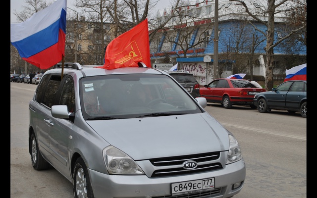 15 марта 2015 г. активисты Евпаторийского отделения партии "РОДИНА" в Республике Крым приняли участие в организации и проведении автопробега в честь празднования годовщины со дня проведения общекрымского референдума об определении статуса Республики Крым.