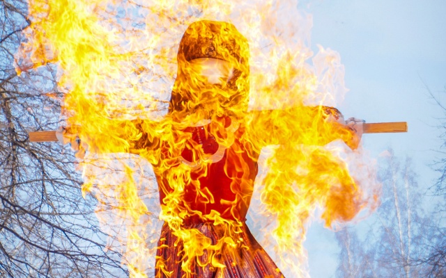 Завершился праздник Масленицы хороводом и традиционным сжиганием чучела.