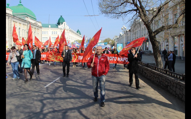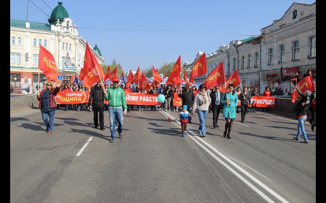 В рядах демонстрантов - трудящиеся омских предприятий, представители общественных организаций, политических партий, молодежь, ветераны. Одной из самых многочисленных колонн стала колонна партии "РОДИНА". Социал-патриоты прошли с растяжками "ПАРТИЯ РОДИНА – ПАРТИЯ ТРУДОВОГО НАРОДА" и "ПАРТИЯ РОДИНА. НЕТ ЛИБЕРАЛЬНОМУ РАБСТВУ". Всего участниками первомайского шествия стали около 10 тысяч человек.