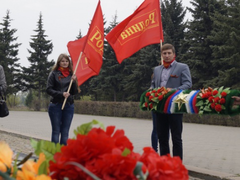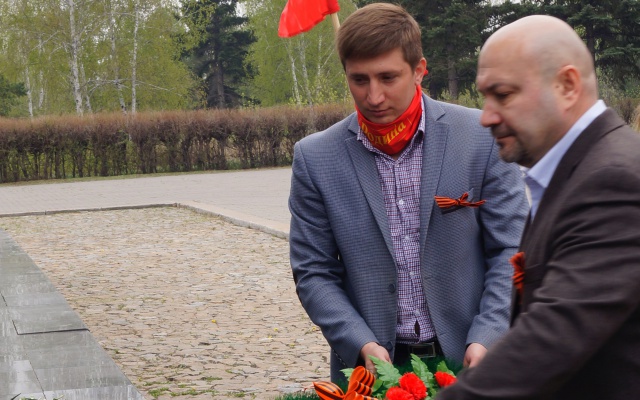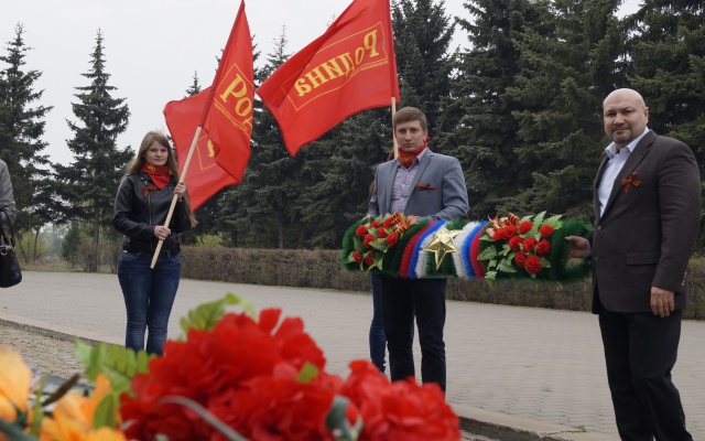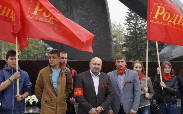 Актив Омского отделения партии "РОДИНА" возложил гирлянду к памятнику Солдата-Победителя в мемориальном комплексе парка Победы.