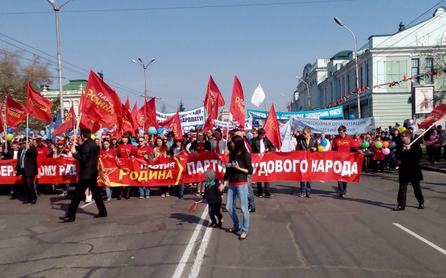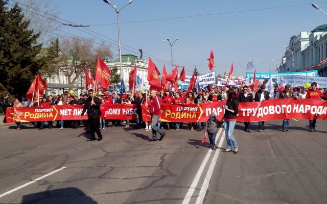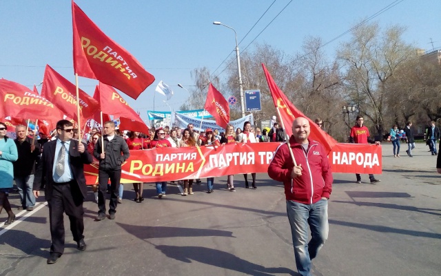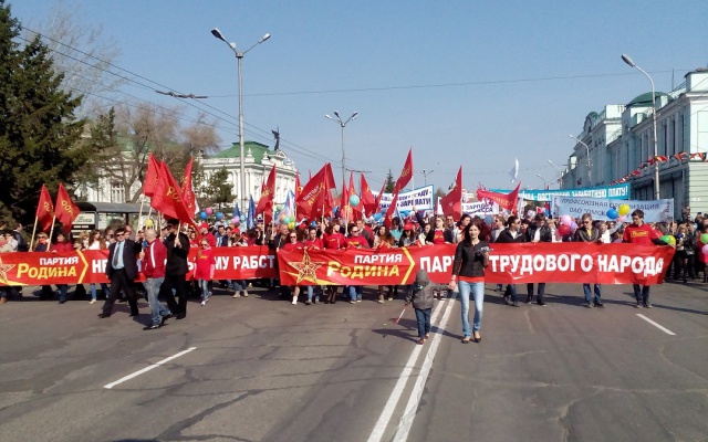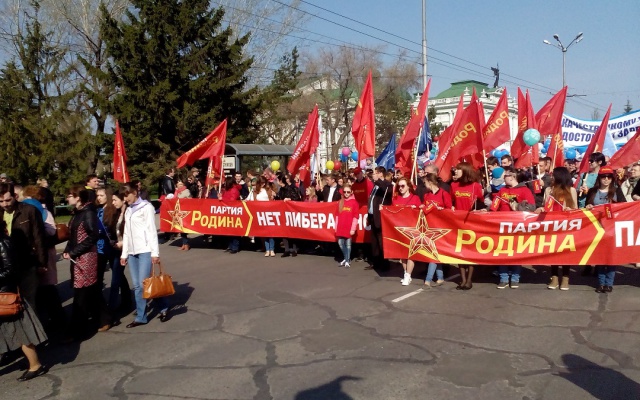 Соратники партии "РОДИНА" прошли в составе организованной колонны по центральным улицам сибирского города.