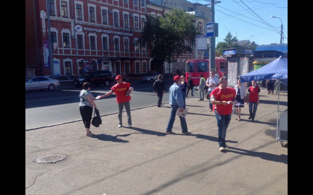 6 сентября 2014 года региональное отделение партии "РОДИНА" в Оренбургской области и местные отделения партии в Ленинском и Дзержинском районах города Оренбурга провели совместные пикеты по раздаче листовки регионального отделения.