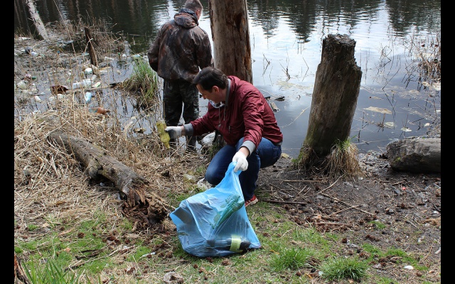 В минувшую пятницу, 25 апреля, родинцы Дзержинска (Нижегородская область) совместно с эколого-биологическим центром города организовали уборку у Утиного озера, расположенного за гипермаркетом "Карусель".