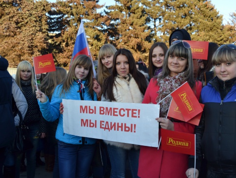 18 марта на Театральной площади в Саратове прошёл митинг-концерт, посвященный возвращению Крыма в состав Российской Федерации. В акции, по оценкам полиции, принимало участие более восьми тысяч человек. Мероприятие сопровождалось патриотическими песнями. В мероприятии приняли участие члены партии "РОДИНА" и её соратники.
