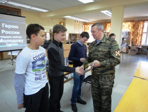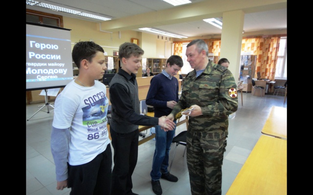 27 февраля в Центральной городской библиотеке состоялся урок мужества для школьников города Озерска, посвященный памяти Героя России Сергея Молодова – командира легендарной 6 роты десантников, вставших на пути у боевиков в Аргунском ущелье Чечни.