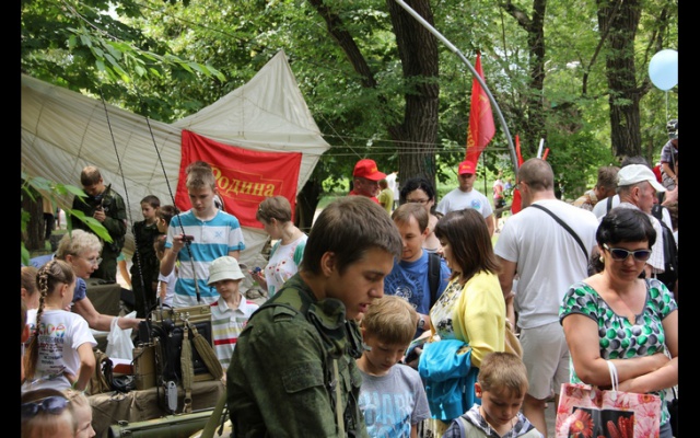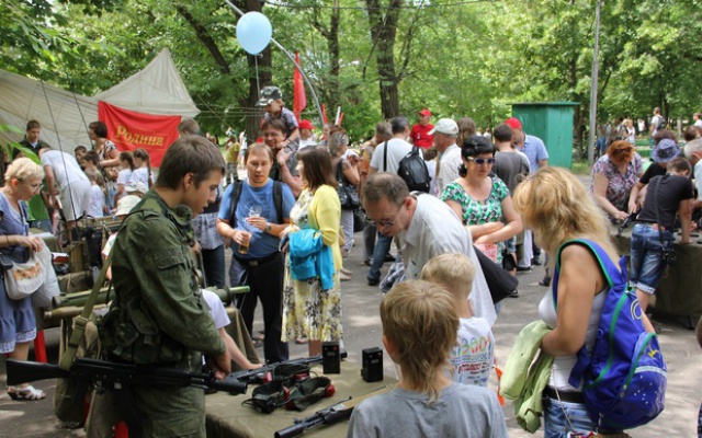 На большой площадке парка самарскими партийцами и военно-патриотическим клубом "Каскад", созданном при спасательном центре МЧС России, была организована тематическая программа "Есть такая профессия – Родину защищать". В рамках программы работало десять учебных точек, на которых гости праздника могли ознакомиться с отечественным армейским вооружением и обмундированием. На демонстрационных столах были разложены различные модификации автомата Калашникова и боеприпасы к ним, боевые пистолеты и пулеметы, ручные гранатометы и огнеметы, армейские радиостанции, бронежилеты и парашюты, предметы саперного дела, включая разнообразные мины и гранаты, и многое другое.