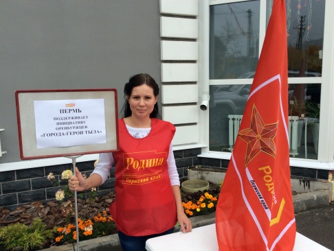 6 сентября 2015 года пермские социал-патриоты провели акцию в поддержку инициативы оренбургского отделения партии "РОДИНА" по введению на территории РФ статуса "Город-герой тыла".