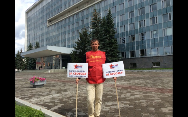 На плакатах выражена принципиальная позиция партии – "Родина своих не бросает" и в знак солидарности с новосибирскими партийцами - "Партия "РОДИНА" - за свободу выборов новосибирцев".