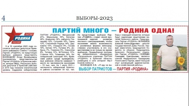 Предвыборная программа избирательного объединения «Региональное отделение ПАРТИИ «РОДИНА» в Брянской области» на выборах депутатов Брянского районного Совета народных депутатов 7 созыва