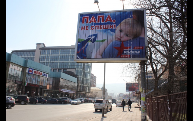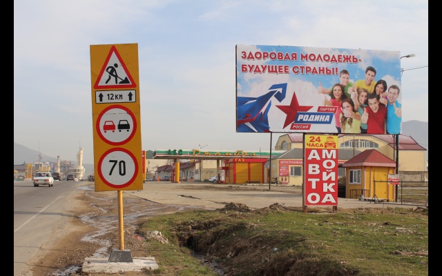 Региональное отделение "РОДИНЫ" в Дагестане установило по Махачкале баннеры с символикой партии. Социальная реклама от имени партии "РОДИНА" предостерегает о соблюдении скоростного режима на дорогах региона, о необходимости крепкой и здоровой семьи для будущего страны и просто приветствует въезжающих на территорию республики.