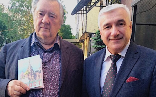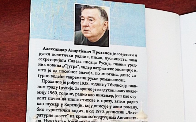 В Москве в торжественной обстановке Любомир Радинович вручил автору Александру Проханову книгу "Гость", впервые переведённую на сербский язык.