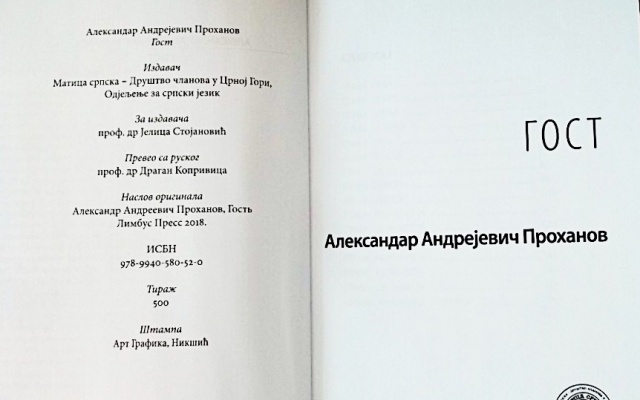 По инициативе Президента Общества русско-сербско-черногорской дружбы "Славянский мост», председателя воронежского отделения партии "РОДИНА" по Воронежской области Любомира Радиновича, отвечающего за партийное сотрудничество с балканскими странами, а также его друга - черногорского политика, поэта Милана Кнежевича, в издательстве "Матицы сербской" вышла в свет книга "Гость" легендарного русскогописателя Александра Проханова.