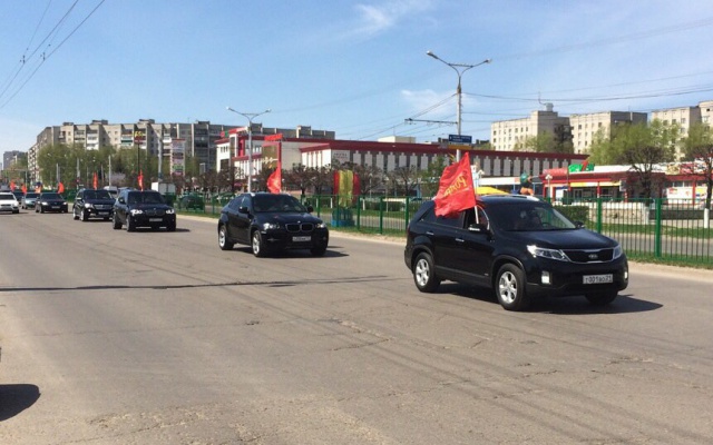 А 10 мая по центральным улицам Чебоксар проехала колонна из 30 автомобилей с флагами партии "РОДИНА" и с патриотическими песнями военных времен.