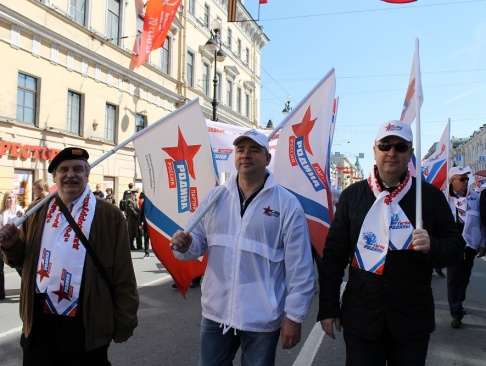 Колонна партии "РОДИНА" на первомайской демонстрации в Санкт-Петербурге.