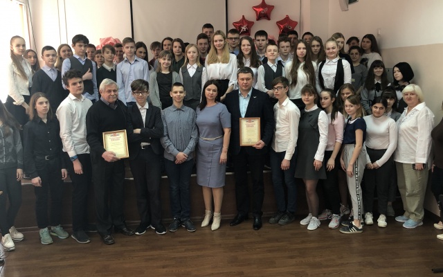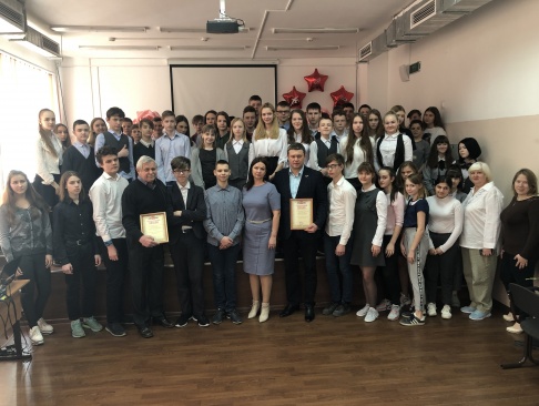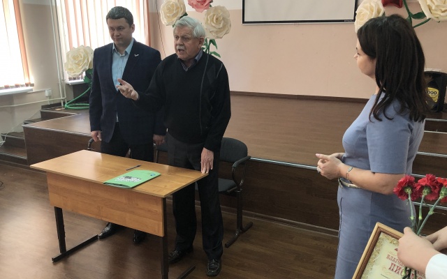 Директор МБОУ "Школа №81 имени Героя Советского Союза В.Н. Жалнина" Оксана Чуракова поблагодарила Владимира Антонова и Валерия Барсука за активную гражданскую позицию и созидательную работу по патриотическому воспитанию подрастающего поколения, от имени педагогического коллектива школы вручила им цветы и благодарственные письма.