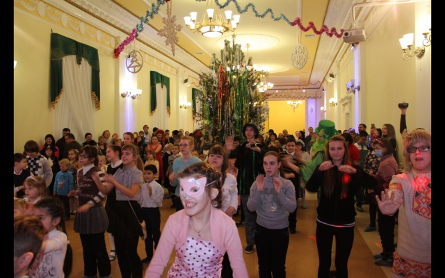 Перед началом театрализованного представления у большой нарядной елки в фойе Дворца культуры "Заря" выступили артисты и аниматоры с разнообразной музыкальной и танцевальной программой. Творческие коллективы Дворца культуры подготовили для ребят новогоднюю дискотеку и игротеку, веселые хороводы с участием Деда Мороза и Снегурочки, сказочных персонажей, героев мультфильмов, ростовых кукол.