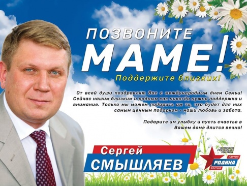 С праздником, с Международным днем семьи!" – с такими словами обратился к землякам председатель Челябинской "РОДИНЫ" Сергей Смышляев.