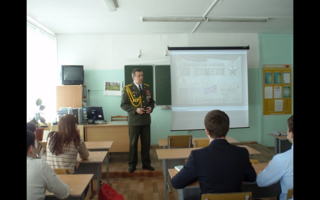 Празднование памятной даты традиционно прошло в рамках школьной акции "Мы – вечная память", приуроченной к дню рождения Героя России Сергея Молодова. В этом году ему исполнилось бы 50 лет. Началось оно с уроков мужества, в которых приняли участие ветераны боевых действий и военной службы.