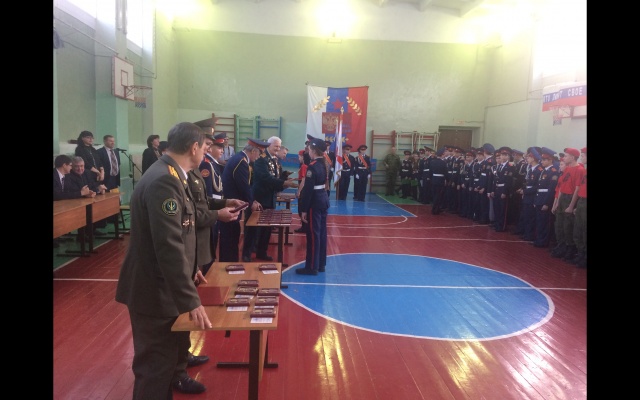 Традиционно в спортивном зале школы собрались учащиеся кадетских классов, родители и почетные гости, среди которых были представители администрации Советского района, ветераны Великой Отечественной войны и боевых действий.