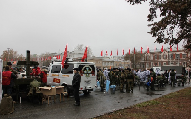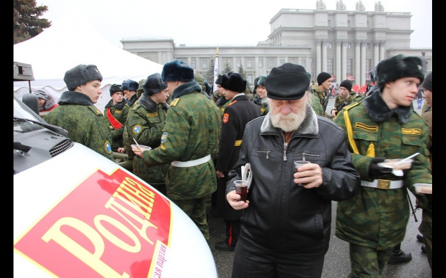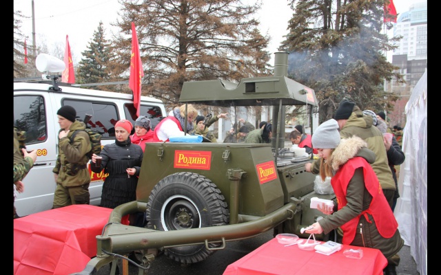 Патриоты Самарского регионального отделения партии развернули на площади большой парадный шатер, в котором угощали ветеранов и многочисленных гостей праздника обедом, приготовленным на полевой кухне "РОДИНЫ".