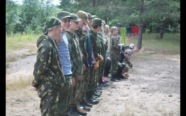 В лагере участвует около 30 воспитанников военно-патриотических клубов, юношей и девушек.