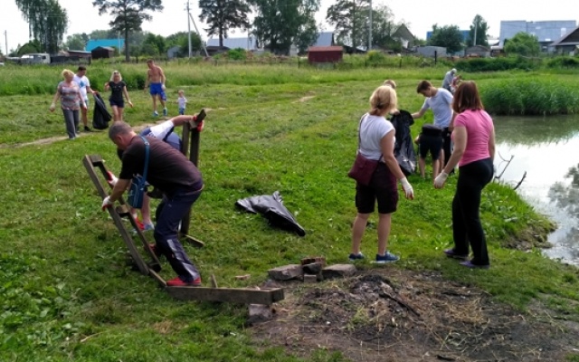 В рамках Всероссийской акции "Чистый берег" сторонники партии "РОДИНА" совместно с жителями Пашино организовали уборку на берегу озера "Мышкино".