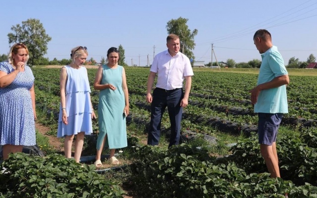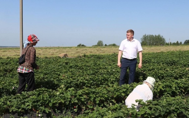 Глава Чебоксарского округа, председатель реготделения партии "РОДИНА" в Чувашской Республике Владимир Михайлов посетил сельхозпредприятие, выращивающее клубнику.
