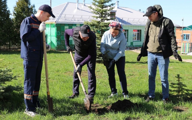 Глава Чебоксарского округа, председатель Чувашской "РОДИНЫ" Владимир Михайлов совместно с молодежью высадили более 30 деревьев: зеленые и голубые ели, туи.
