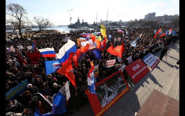 В столице Приморья на Корабельной набережной состоялся "Народный сход за братский народ" в поддержку крымчан и в защиту конституционных прав русскоязычного населения Украины.