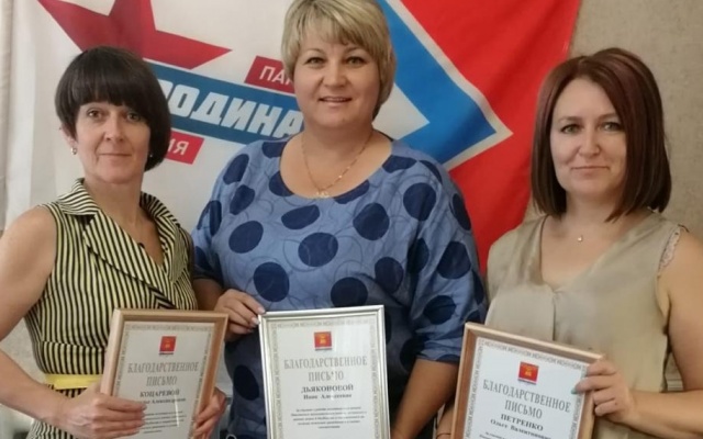 Родинцы Инна Дьяконова, Ольга Петренко, Наталья Безрукова получили благодарственные письма от главы Павловского района Воронежской области Максима Янцова. Партийцы были награждены за участие в работе волонтерского штаба, направленного на помощь пожилым людям в условиях самоизоляции, а также за оказанную поддержку во всеобщей борьбе с пожарами. Кроме того, они являются активными участниками партийной акции "Родина рядом".
